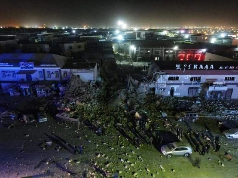 Kazakistan’ın Aktav kentinde bulunan bir kafede meydana gelen şiddetli patlama sonrası kafenin yer aldığı iki katlı binanın bir kısmı yıkıldı.