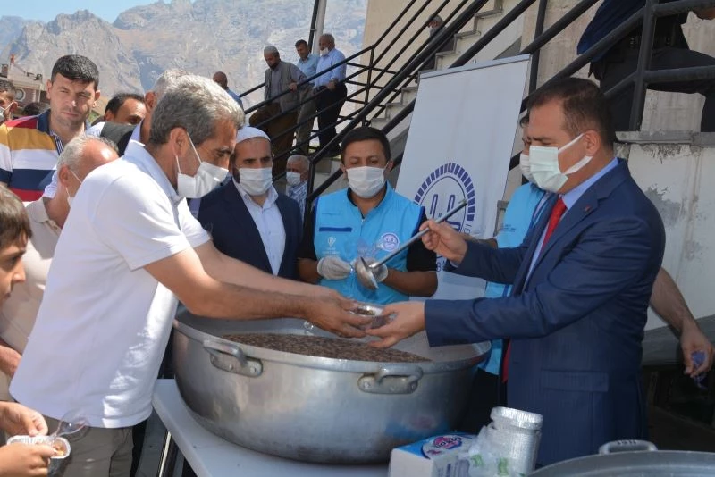 Hakkari Valisi ve Belediye Başkan Vekili İdris Akbıyık, Muharrem ayı dolayısıyla düzenlenen etkinlikte kazanlarının başına geçip vatandaşlara kendi elleriyle aşure ikram etti.