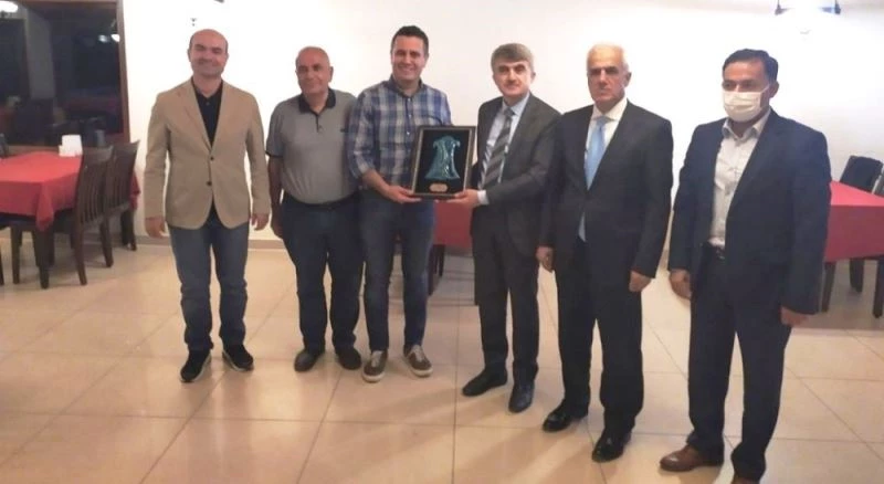 Görüşmenin sonunda Rektör Uysal, Şeref Kazcıoğlu ve İsmet Kazcıoğlu’na kaftan tablosu hediye ederek Türk sanayisine yaptıkları katkılardan dolayı teşekkür etti.