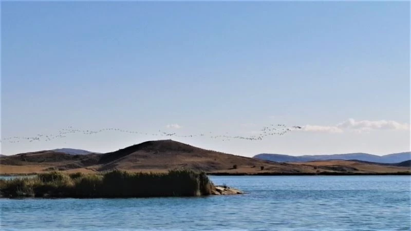 Sivas’ın Zara ilçesinde bulunan ve birçok kuş türüne ev sahipliği yapan Tödürge gölü, birçok kuş türünün de göç durağı olma özelliği taşıyor. Yılın her mevsimi farkı kuş türlerinin gözlenebildiği gölde şu günlerde göçmen kuşlar sıklıkla gözlenebiliyor. Geçtiğimiz gün gölde mola veren büyük bir kaz sürüsü cep telefonu ile görüntülendi. Görüntülerde çok sayıda kazın, göç düzeninde uçarak göle kondukları görüldü.