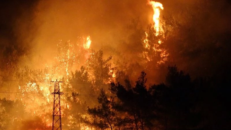 Büyük bir alana yayılmış olan orman yangınına şu anda sadece karadan müdahale ediliyor. Havanın kararması ile birlikte havadan müdahale edilemeyen yangın yerleşim yerlerini tehdit altına aldı. Yüzlerce ekibin farklı noktalardan müdahale ettiği yangının alevleri ise gecenin karanlığını kızıla boyadı. Rüzgarında etkisiyle devasa alevlere teslim olan yangın şehrin birçok noktasından görüldü.