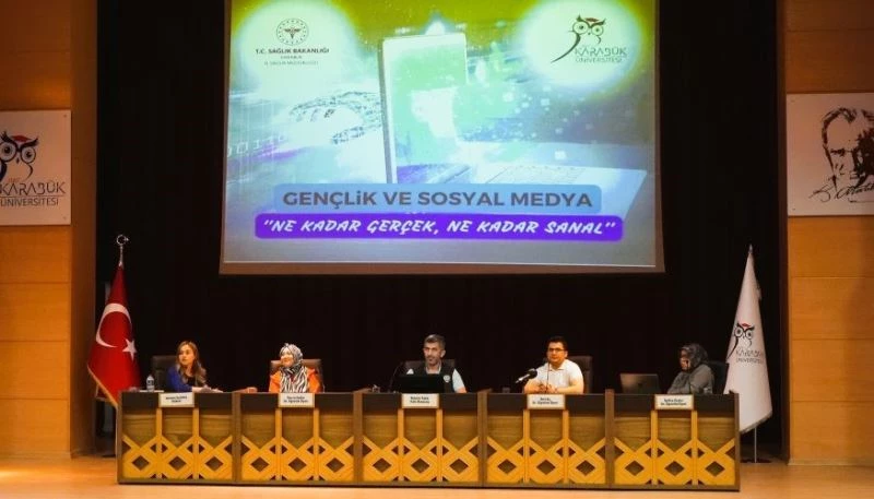 Sağlık Bakanlığı ve Yükseköğretim Kurulu Başkanlığı iş birliğinde Karabük Üniversitesi ile İl Sağlık Müdürlüğü paydaşlığında gerçekleşen söyleşide davranışsal bağımlılık, uzmanlar internet, sosyal medya kullanımı ve siber suç konularında uzmanlar tarafından bilgilendirme yapıldı.
