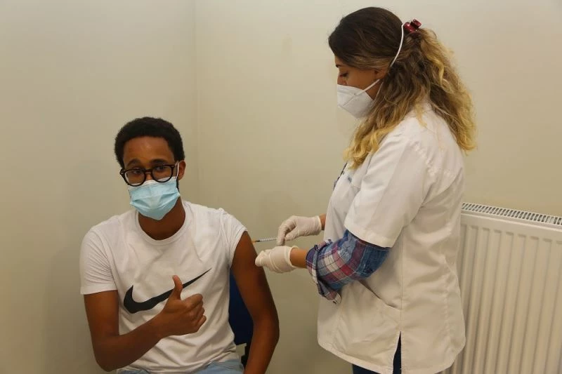 KBÜ’de öğrenciler aşılarını aşı uygulama merkezinde oluyor