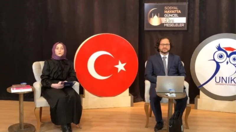 Karabük Üniversitesi (KBÜ) İlahiyat Fakültesi ve Sağlık Kültür ve Spor Daire Başkanlığının ortaklaşa düzenlediği “Sosyal Hayatta Güncel Dini Meseleler” konulu söyleşi sosyal medya üzerinden canlı yayınıyla yapıldı. İlahiyat Fakültesi Dekanı Prof. Dr. Murat Şimşek’in konuşmacı olarak katıldığı program yaklaşık bir saat sürdü. İslamofobi, helal gıda ve yapay zekâ gibi konuların konuşulduğu programın moderatör koltuğuna Betül Alan ve Sena Mazlum oturdu.
