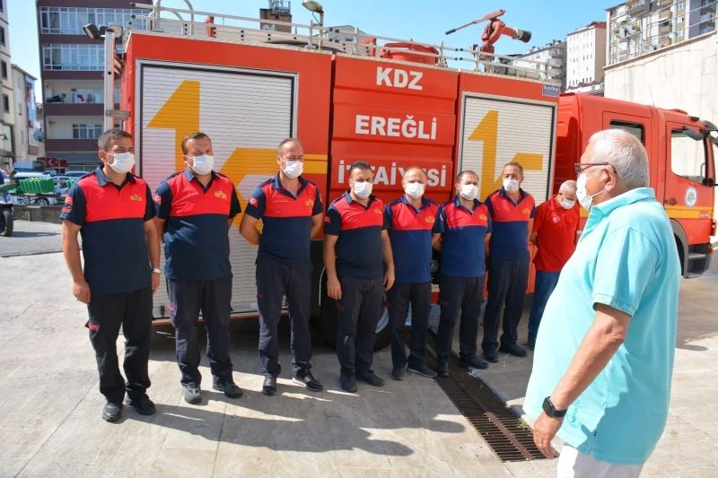 Türkiye’yi saran orman yangınlarına karşı alevlerle mücadele ederek insanları, hayvanları, ağaçları korumak için özveriyle çalışan itfaiye ekibi, Kdz. Ereğli’ye döndü. Kahraman 8 itfaiyeci, Belediye Başkanı Posbıyık, belediye yöneticileri ve çalışanlar tarafından alkışlarla ve çiçekle karşılandı.