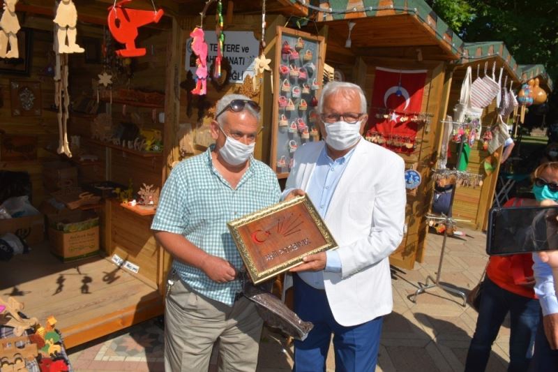 Ressam ve heykeltıraşların canlı performans sergilediği etkinlikte Başkan Posbıyık, Sanat Sokağı sakinlerinin kulübelerini gezerek ürünlerini inceledi.