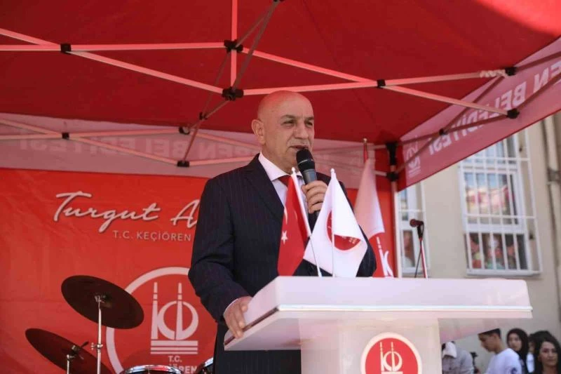 Geçmişte gecekondu kenti olan Keçiören’in büyük değişim yaşadığını ve şehirleşme anlamında metropol bir kent haline geldiğini de vurgulayan Altınok, “1994’te şehrin neredeyse tamamı gecekonduydu. Şimdi Ankara’nın en güzel yeri Keçiören. Keçiören’in girişinde Atatürk Botanik Bahçesi var. Teleferik, Şelale, Doğal Yaşam Parkı, Estergon Kalesi ise şehrimizin marka değerleridir. Bir de çocuklarımız için lunapark yaptık. İnşallah daha güzel hizmetlerimiz davam ediyor. Öte yandan okullarımızın ihtiyaçlarını da karşılıyoruz. İlk defa 1994 yılında okulların kapısından giren belediye, Keçiören Belediyesi’dir. Ankara’nın birçok okulunun duvarında ‘Buranın çevre düzenlemesi Keçiören Belediyesi tarafından yapılmıştır’ yazıyordu. Sizler hizmetlerin en güzeline layıksınız. Her biriniz bir Türk bayrağı, her biriniz birer yıldızsınız. Bayrağımızı daha yükseklere asacaksınız. Eğitim öğretim hayatınızda sizlere başarılar diliyorum” diye konuştu.