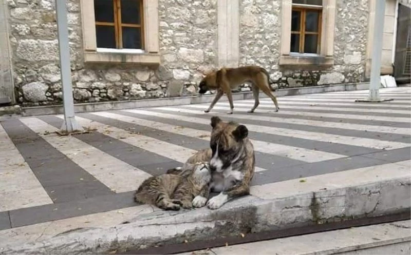 Çarşıda esnaflık yapan vatandaşlar kedi ile köpeğin dostluğunun uzun süredir sürdüğünü belirterek, ’’Bu kedi ile köpek uzun zamandır beraber oynuyorlar. Köpek kısa bir süre önce 9 tane yavru dünyaya getirdi. Yavrularının bir kısmı kaybolunca anne köpek hastalandı ve sürekli ağladı. İşte o günlerde bu kedi anne köpeğin yanından hiç ayrılmadı. Gece ve gündüz sürekli anne köpeğin yanında olan bu kedi adeta sırdaşlık yaparak anne köpeğin derdine ortak oldu. Şimdi onların oynamasını biz seyrediyoruz’’ dediler.