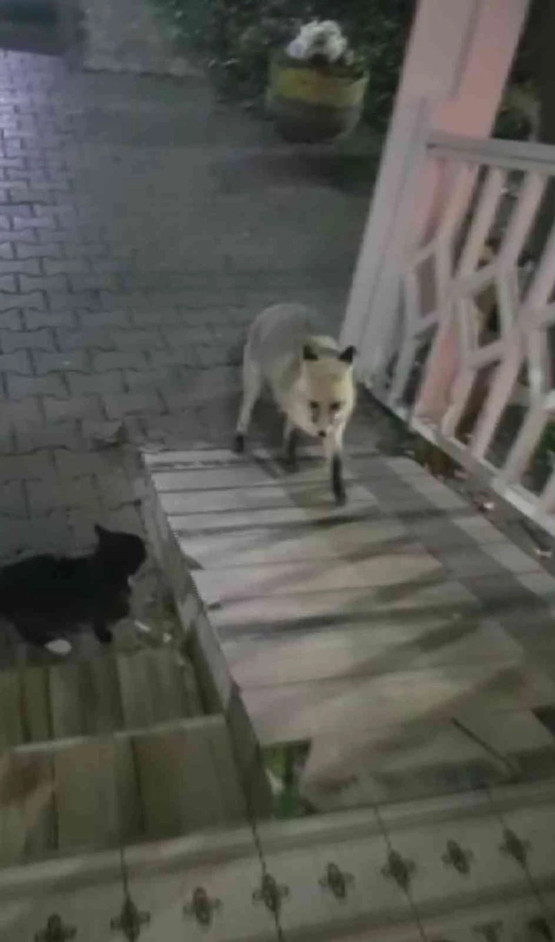 Kedi ile tilki ekmeği bölüşemedi, o anlar kameraya yansıdı