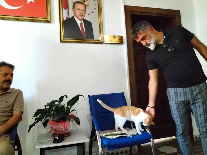 Muğla’nın Köyceğiz ilçesinde sokak kedisi ‘Sarı’ Kaymakamlık binasına yerleşti.
