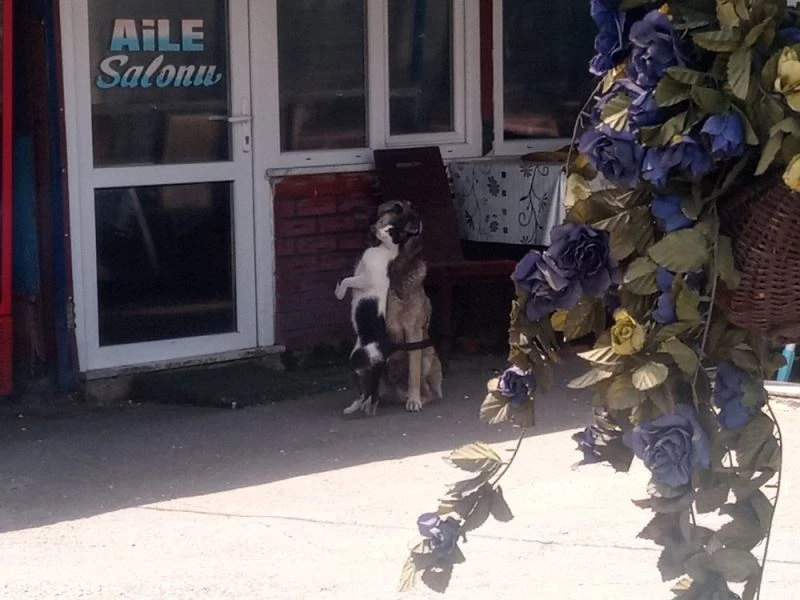 Zonguldak’ta kedi ile köpeğin dostluğu görenleri hem duygulandırdı hem de şaşırttı. İki arkadaş dakikalarca birlikte oyun oynayarak sevimli görüntüler ortaya çıkardı. Oyunların bitmesinin ardından kedi ve köpek bulduklarını yemeği bile birlikte yediler. Ardından birlikte gözden kayboldu. Öte yandan kedi ve köpeği yan yana gören vatandaşlar ise ellerine telefonlarını alarak o anları dakika dakika kaydetti.