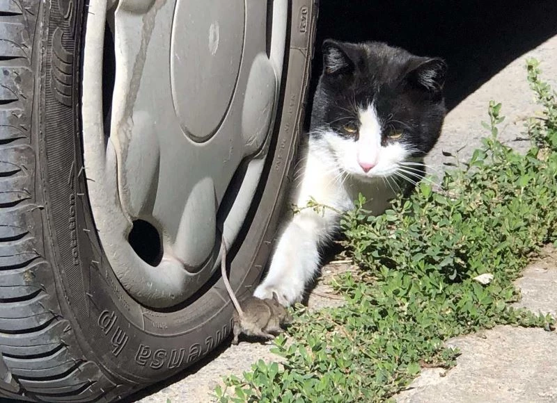 Kent merkezinde Atatürk Caddesi Kepçeli mevkiinde kaydedilen görüntülerde kedinin fare ile oynadığı görülüyor. Bir süre sonra görüntülendiğini fark eden kedinin dalgınlığından faydalanan fare kaçmaya çalışıyor. Durumu fark eden kedi, fareyi ağzıyla yakaladıktan sonra bir süre daha oynuyor. Kedi, kendisini izleyenlerin sayısının artmasının ardından bölgeden uzaklaşıyor. Kedinin gitmesiyle fare de gözden kayboluyor.