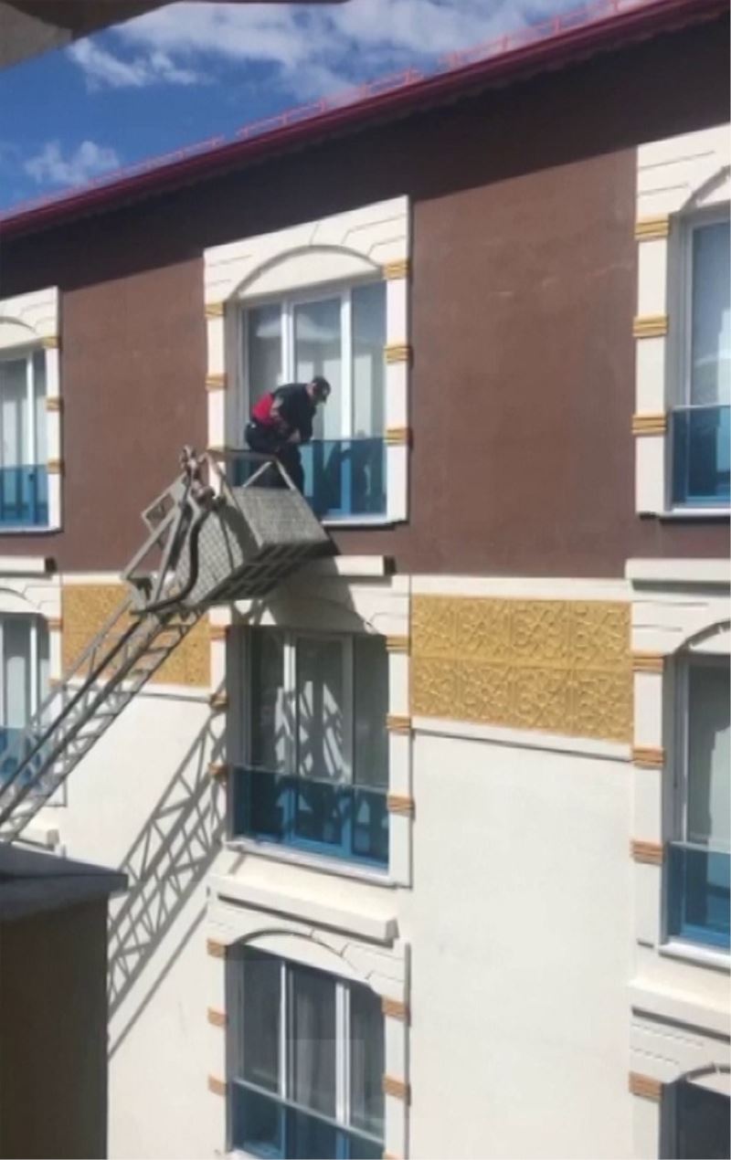 Kedi fark etti itfaiye kurtardı, kurtarılışı pürdikkat izledi