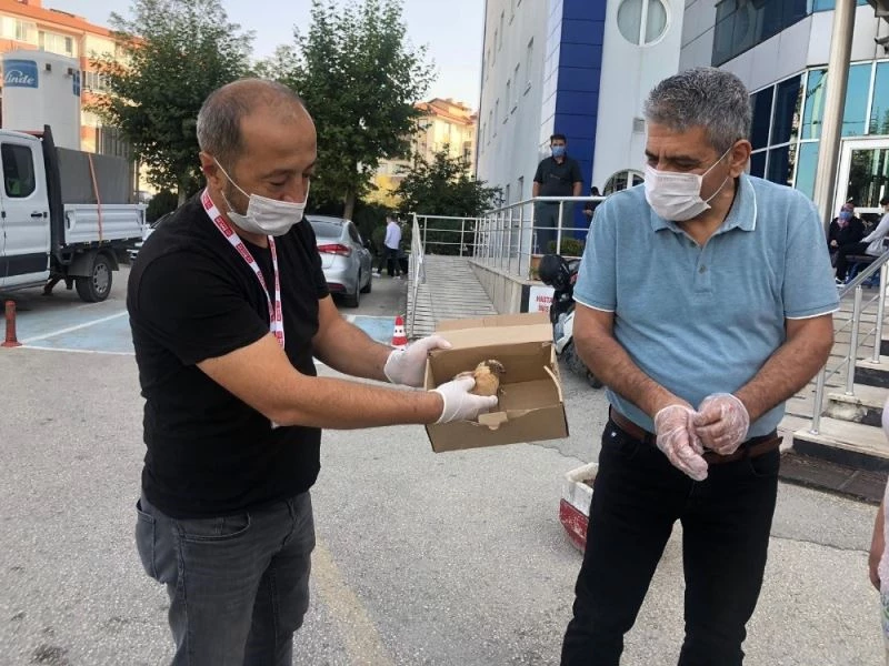Bolu’da kedinin saldırısına uğrayan yaralı yavru kuş, sabah saatlerinde işe giden doktor tarafından kurtarılarak veterinere teslim edildi.