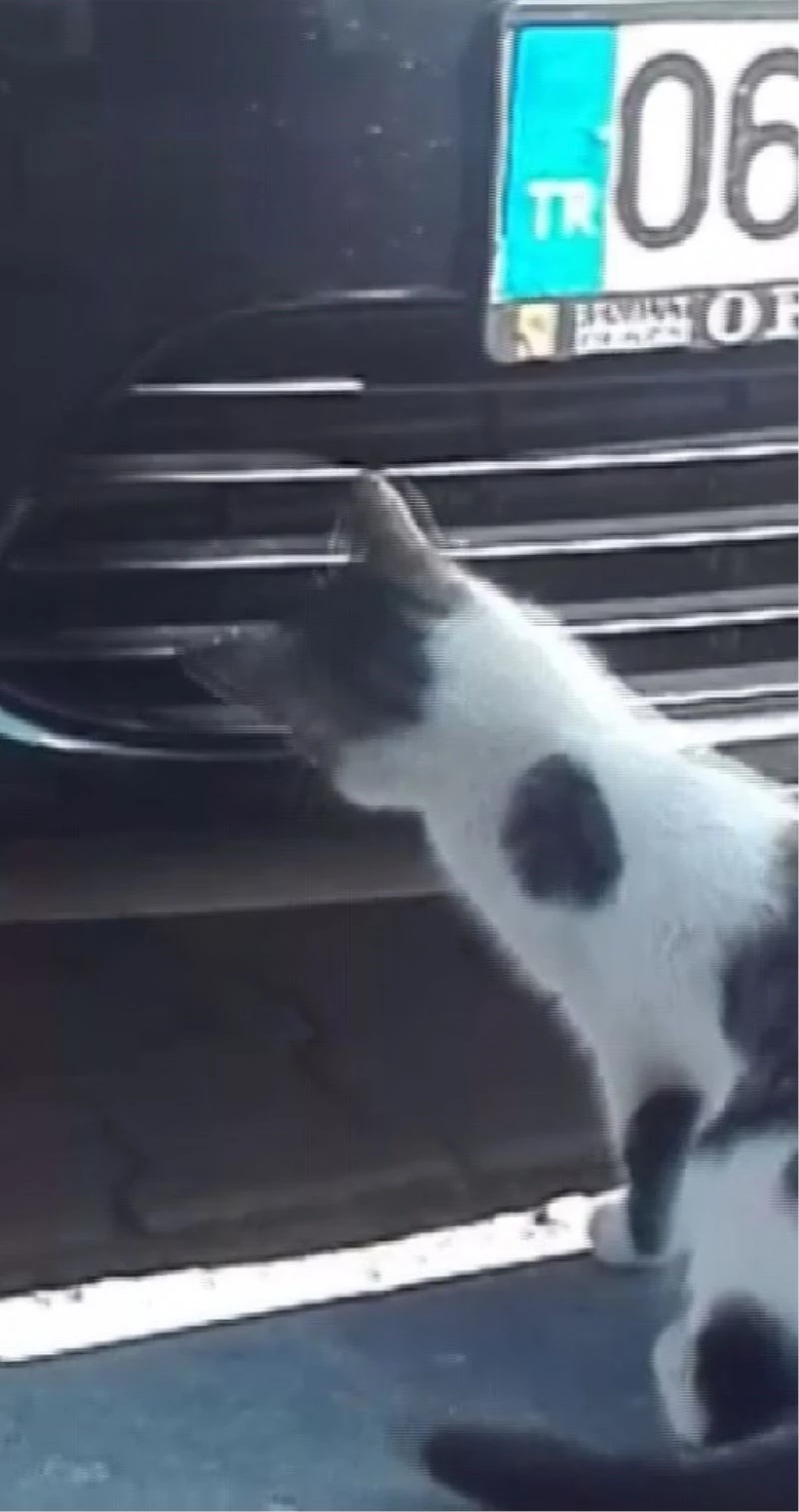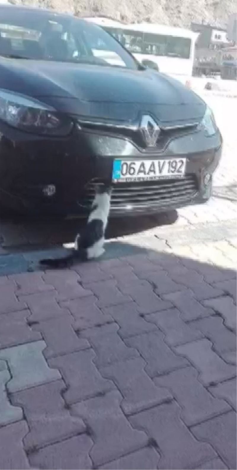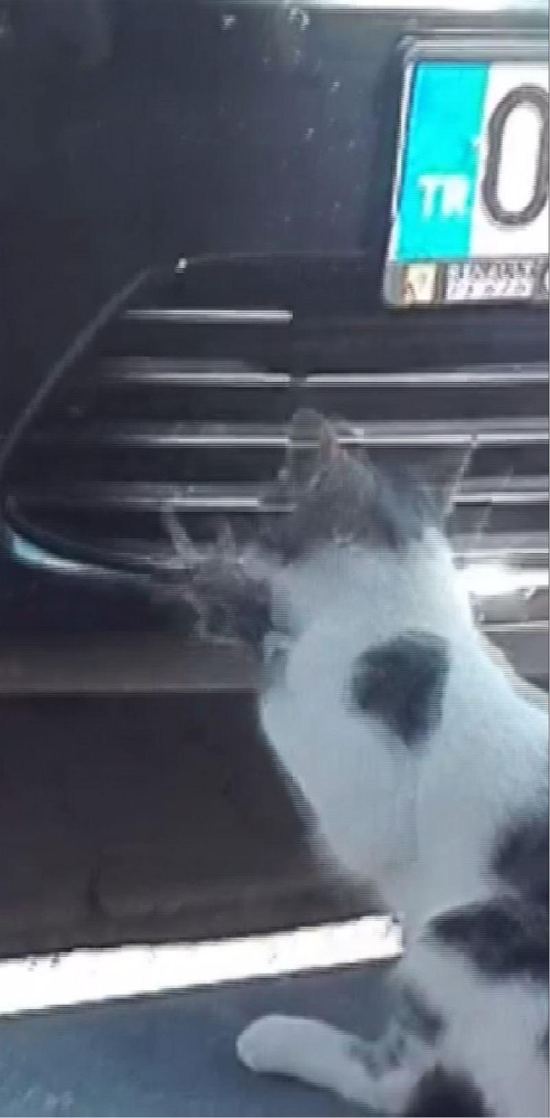 Sivas’ın Zara ilçesinde kedinin otomobilin ön aksamına giren serçeyi yakalama anı bir vatandaş tarafından görüntülendi.