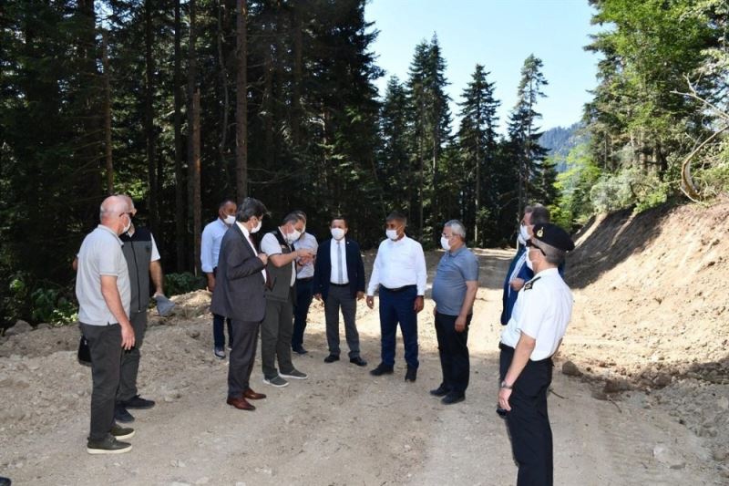 Karabük Valisi Fuat Gürel, AK Parti Karabük milletvekilleri Cumhur Ünal ve Niyazi Güneş, CHP Karabük Milletvekili Hüseyin Avni Aksoy, Zonguldak Orman Bölge Müdürü Zekeriya Beyazlı ve il protokolü, Keltepe Kayak Merkezi ve Eğriova Göleti arasında yapımı devam eden yolda incelemelerde bulundu.