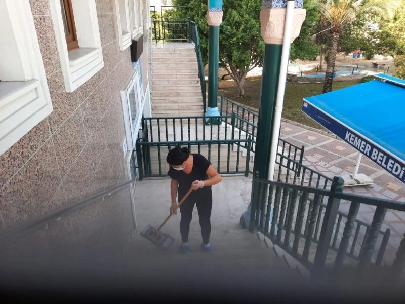 Cami ve mescitlerde pandemi nedeniyle daha titiz bir temizlik çalışması yürüten belediye ekipleri, vatandaşların ibadetlerini rahat bir şekilde yapabilmeleri için detaylı temizlik çalışması başlattı. Kemer Belediyesi Temizlik İşleri Müdürlüğü bünyesinde oluşturulan cami temizleme ekibi tarafından gerçekleştirilen çalışma kapsamında, cami ve mescitlerdeki halılar, pencereler, kapılar, camlar ve duvarlar siliniyor.