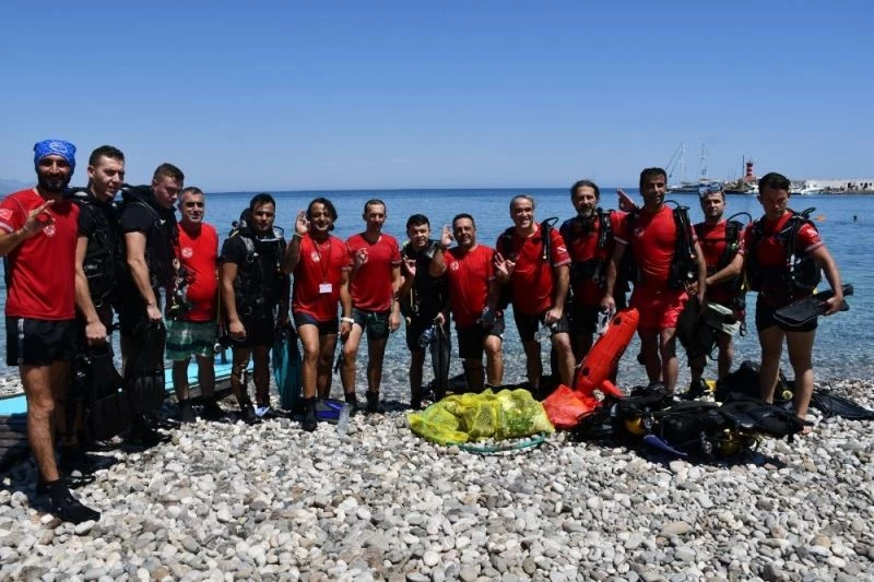 Antalya’nın Kemer ilçesinde su altı temizliği yapıldı. Turistlerin de katıldığı temizlikte, çuvallar dolusu çöpler dikkat çekti.