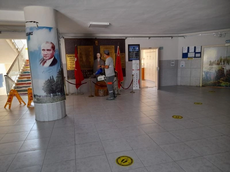 Kemer Belediyesi, yeni eğitim ve öğretim yılının başlamasıyla beraber ilçedeki okullarda dezenfektan çalışmalarına başladı.