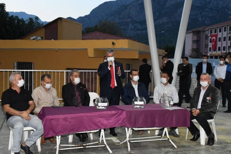 Başkan Topaloğlu, kura çekimi sırasında yaptığı açıklamada, Kemer’in modern ilk kapalı pazar yerinin tamamlandığını söyledi.
