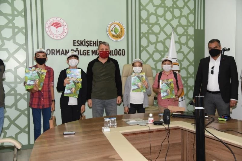 Eskişehir’in Mihalgazi ilçesinde çıkan orman yangınında ekiplere destek olan 4 çocuk, Eskişehir Orman Bölge Müdürlüğünce ödüllendirdi.