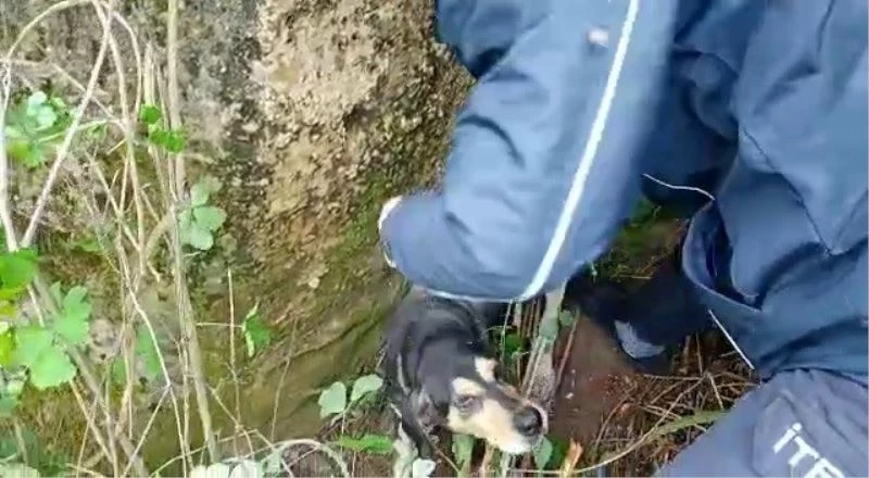 Zonguldak Alaplı İlçesinde yol kenarında düştüğü kayalıklarda 2 gündür açlıktan kalan köpeği itfaiye kurtardı.