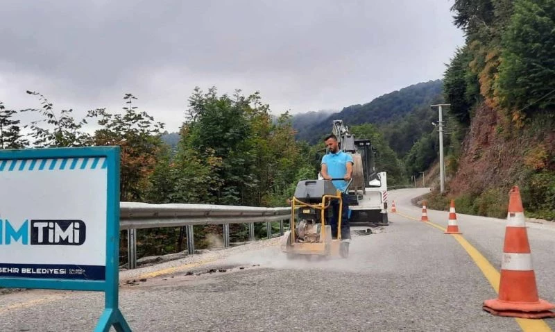 Kocaeli Büyükşehir Belediyesi yol bakım timi, kent genelinde bozuk, aşınmış yol ve kaldırımları onarıyor.