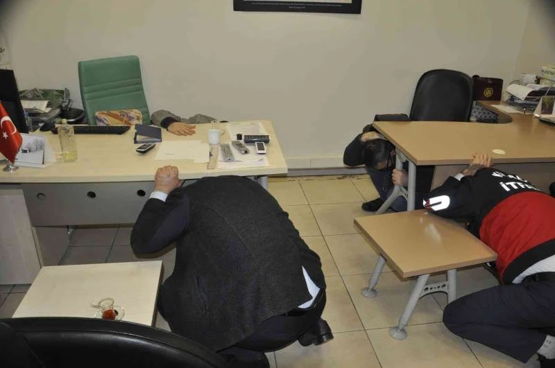 Şen’in bilgilendirmesinin ardından senaryo doğrultusunda alarmın çalmasıyla personel masa altına girerek deprem pozisyonu aldı. İkinci alarm sesinin duyulmasıyla da bina tahliye edilerek, bahçedeki güvenli alana geçildi. Gerçeği aratmayan tatbikat başarılı bir şekilde sonuçlandırıldı.