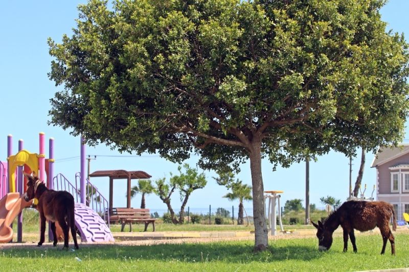Kent merkezinde çimleri uzayan çocuk parkları eşek ve keçilere kaldı