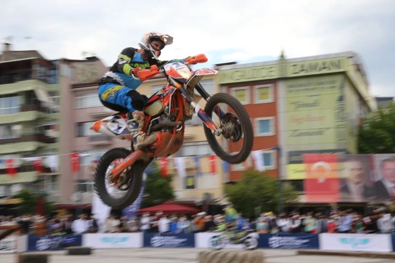 Kocaeli’de, hafta sonu düzenlenecek Türkiye Süper Enduro Şampiyonası öncesinde sporcuların kent merkezinde yaptıkları gösteri nefesleri kesti.