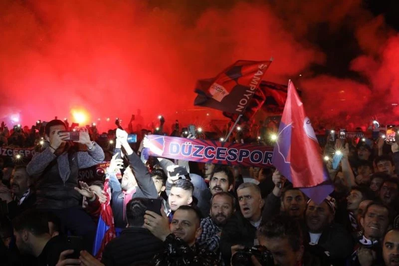 Düzcespor, yaşadığı büyük depremin ardından düştüğü 2. Lige yeniden yükselmenin coşkusunu yaşıyor. Deplasmanda Trabzon Yomraspor ile karşılaşan ve maçtan 2-1’lik skor ile galip ayrılarak şampiyonluğunu garantileyen Düzcespor, küllerinden yeniden doğarak 22 yıl önce düştüğü 2. Lige yükselmenin coşkusunu sabahın ilk saatlerine kadar yaşadı. Trabzon’dan sabah saatlerinde kente gelen takım ile birlikte kentte çifte bayram yaşandı. Takım otobüsünü meşaleler ile karşılayan Kırmızı Lacivertli taraftarlar, futbolcular ve teknik heyet ile meydanda şampiyonluğu kutladı. Düzcespor’un şampiyonluk kutlamasına Vali Cevdet Atay, Kulüp Başkanı Gökhan Kapoğlu, Belediye Başkanı Dr. Faruk Özlü, Milletvekili ve AK Parti Kadın Kolları Genel Başkanı Ayşe Keşir, Emniyet Müdürü Mehmet Ali Akkaplan ve Sağlık Müdürü Dr. Yasin Yılmaz Kırmızı Lacivert takımın şampiyonluk coşkusuna ortak oldu.