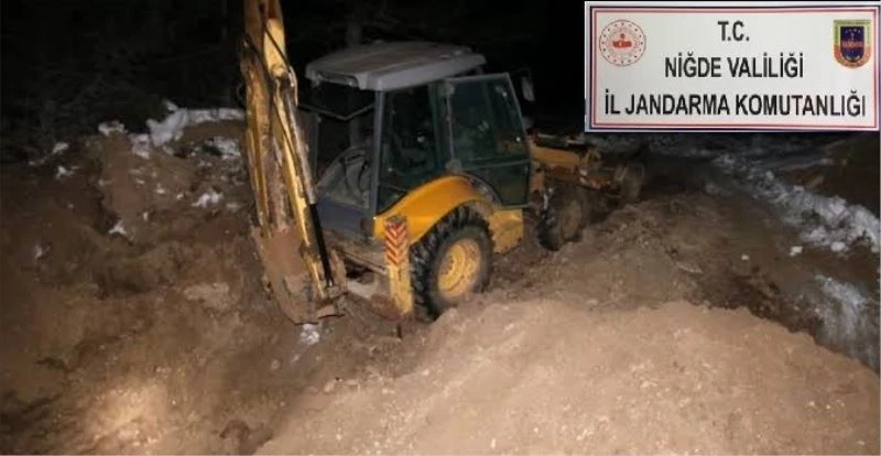 Niğde’de sit alanında iş makinesi ile kaçak kazı yapan 6 kişi jandarma ekipleri tarafından suçüstü yakalandı.