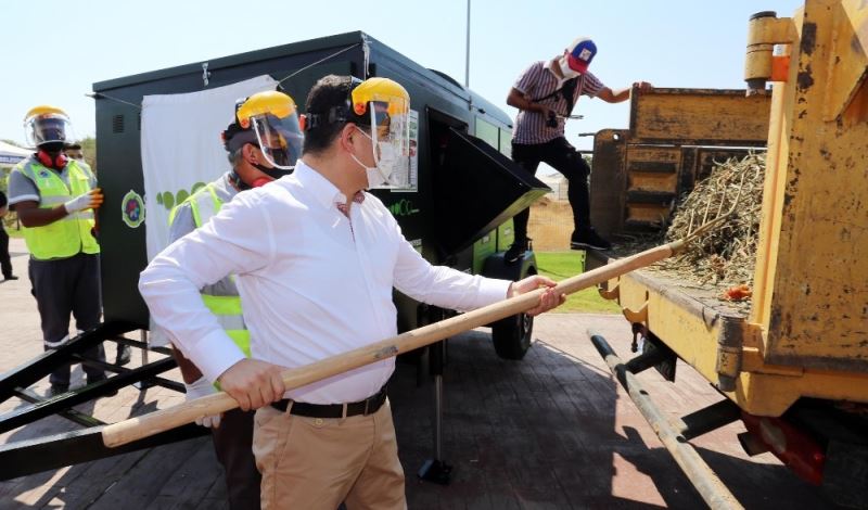 Tütüncü, açıklamasından sonra kompost makinesine sembolik olarak tırpan ile sera bitki atığı attı.