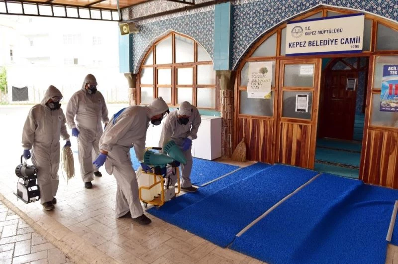 Kepez Belediyesi, korona virüsle mücadelesini sürdürüyor. Kepez Belediyesi Mobil Dezenfekte Ekipleri, ibadete açılma sürecindeki camilerin dezenfekte işlemlerine başladı. Kontrollü ve koşullu olarak 29 Mayıs’ta camilerin ibadete açılma kararının açıklanmasının ardından harekete geçen Kepez Belediyesi ekipleri, berberler, kuaförler, muhtarlıklar ve aile sağlığı merkezlerinden oluşan dezenfekte programlarına ilçedeki 157 camiyi de ekledi.