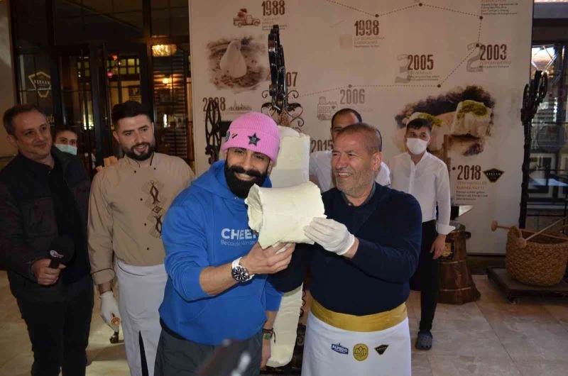 Sanatçı için hazırlanan 120 kilogramlık dondurma Alpedo-Kervan Yönetim Kurulu Başkanı Sami Kervancıoğlu ile birlikte balta ile kesilerek tadıldı.