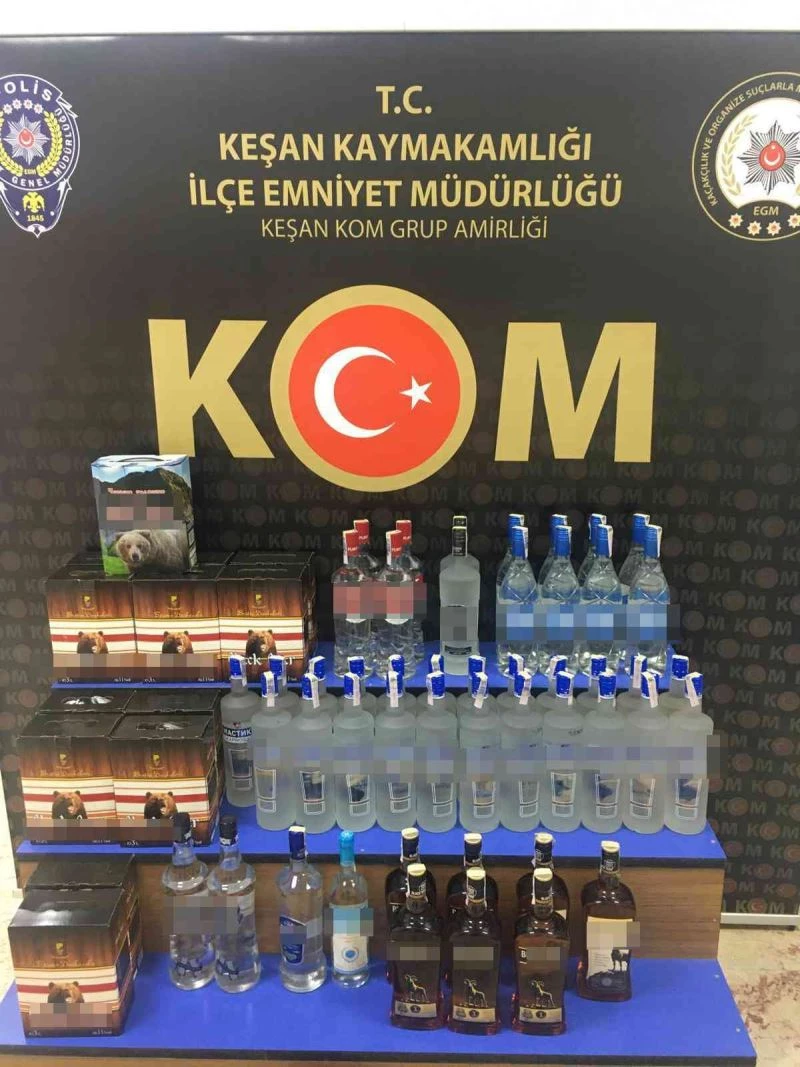 Keşan İlçe Emniyet Müdürlüğü, Kaçakçılık ve Organize Suçlarla Mücadele Grup Amirliği ekipleri ilçede gümrük kaçağı içki satışı yapan şahıslara yönelik bir dizi çalışma yaptı. Uygulama kapsamında Cumhuriyet Mahallesi’ndeki bir eve arama yapıldı. A.B. isimli şahsın ikametinde yapılan aramalarda değişik markalara ait 62 şişe gümrük kaçağı içki ele geçirildi.