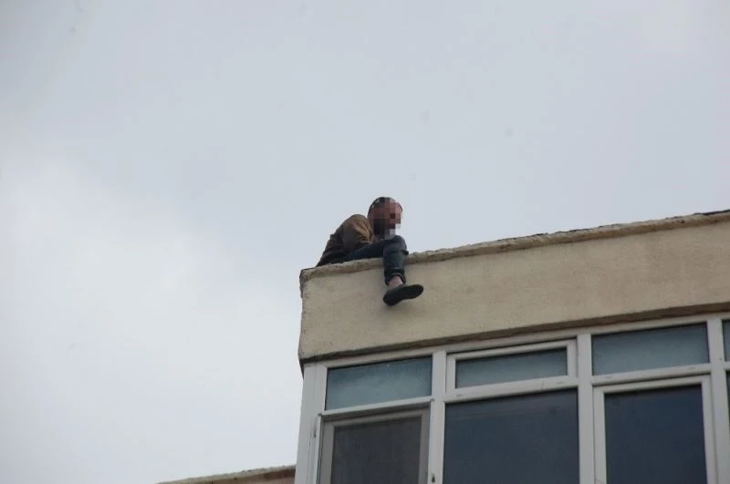 Yaklaşık bir saat boyunca oturduğu çatının üzerinde bir ayağını çatıdan dışarıya sarkıtarak bekleyen H.E, uzun uğraşlar sonucu çatıdan inmeye ikna oldu.