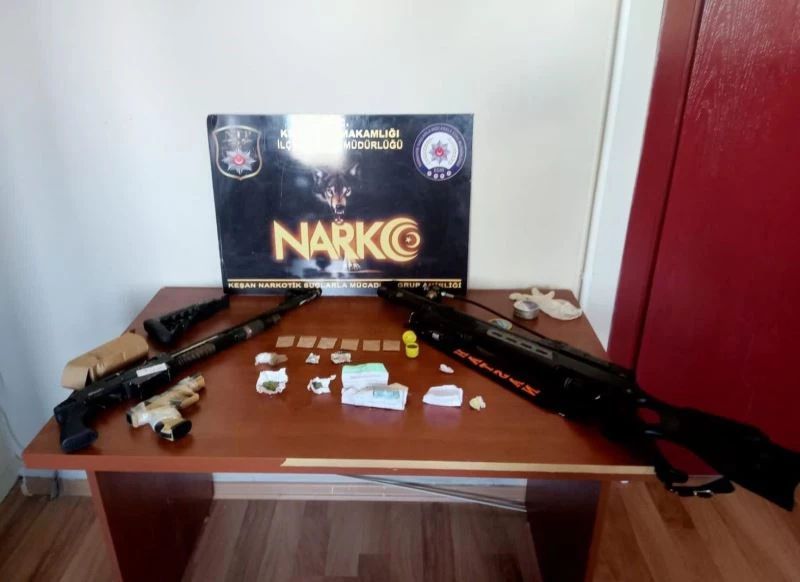 Bu doğrultuda 11 adreste yapılan aramalarda 6 fişek eroin maddesi, 1 fişek toz esrar, 4 fişek bonzai maddesi, 1 adet ecstasy hap, 1 fişek kubar esrar maddesi ve 9.98 gr. kenevir tohumu ele geçirilirken, bunlarla birlikte 1 adet havalı tüfek, 1 pompalı tüfek ile 1 de kuru sıkı tabanca yakalandı.
