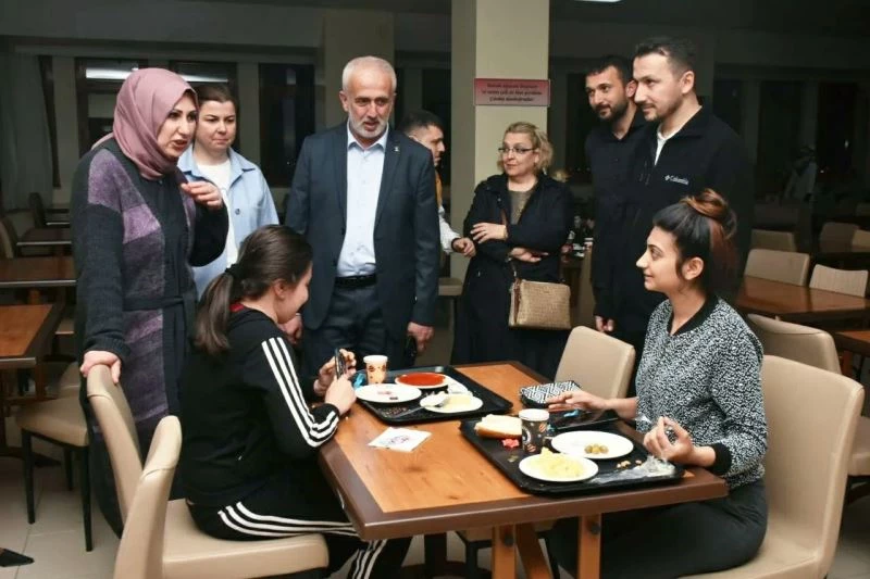DÜZCE – AK Parti Düzce Başkanı Mustafa Keskin, kız öğrenci yurdunda gençlerle sahur yaptı, sohbet etti.