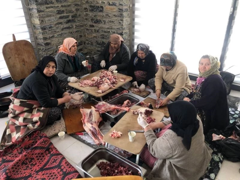 Affet bölgesine yollanacak et kavurmalar hazırlanıyor