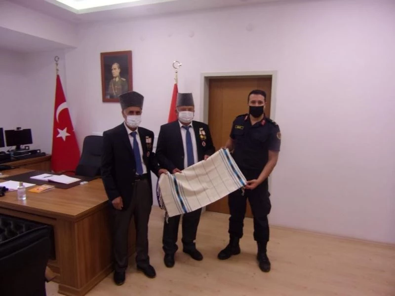 Gaziler, Komutan Ersoy’a el dokuması havlu hediye ettiler.