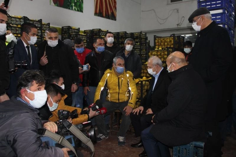 CHP Genel Başkanı Kemal Kılıçdaroğlu, İzmir Buca’da bulunan meyve ve sebze halini ziyaret ederek esnafların sorunlarını dinledi, ardından da toplantı düzenledi.