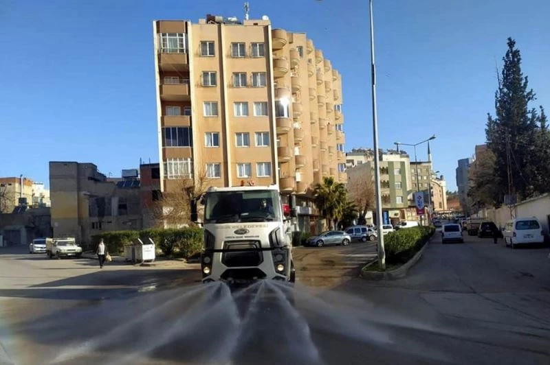 Kilis Belediyesi tarafından korona virüs tedbirleri kapsamında dezenfekte çalışmalarını gece gündüz demeden sürdürüyor.
