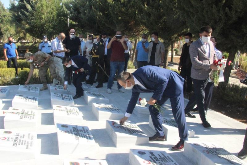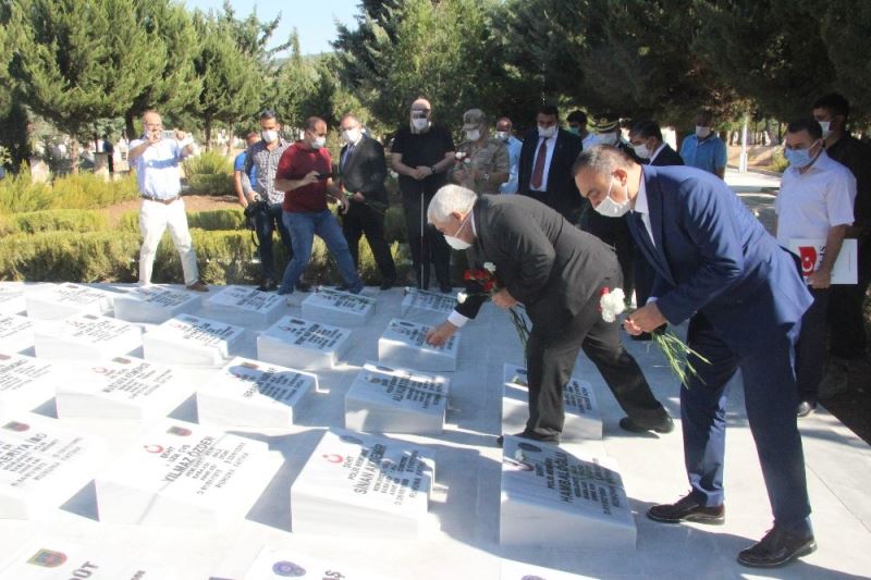 Sabah saat 09:00’da Asri mezarlıktaki Şehitlikte düzenlenen törende, şehitler için dua okunduktan sonra şehit mezarları ziyaret edilerek, karanfil bırakıldı.