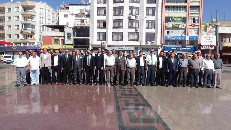 Cumhuriyet Meydanında gerçekleştirilen törende, Kilis Esnaf ve Sanatkarlar Odaları Birliği (KESOB) Başkanı Şevket Memiler, Kilis Ticaret ve Sanayi Odası Başkanı Hacı Mustafa Celkanlı, Esnaf Kefalet Kooperatifi Başkan Vekili Mustafa Çelebi tarafından Atatürk heykeline çelenk konuldu. Saygı duruşu ve İstiklal Marşı okundu.