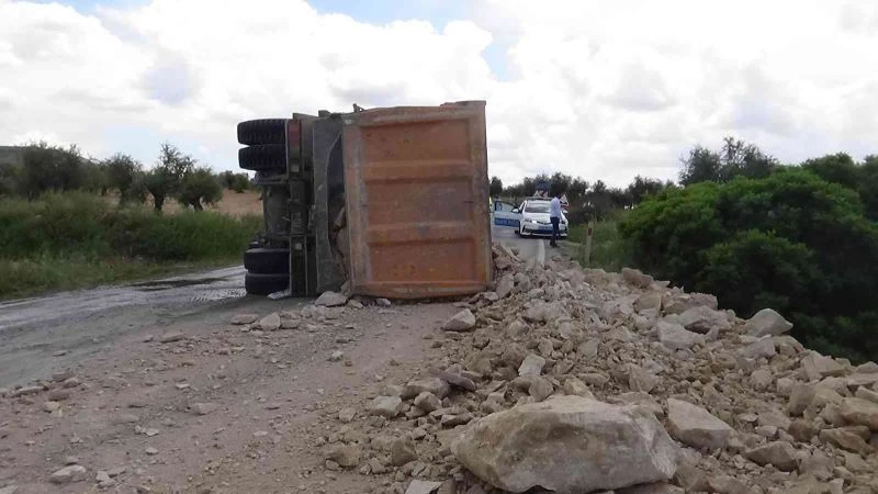 Kilis’te hafriyat kamyonu devrildi yol trafiğe 1.5 saat kapandı