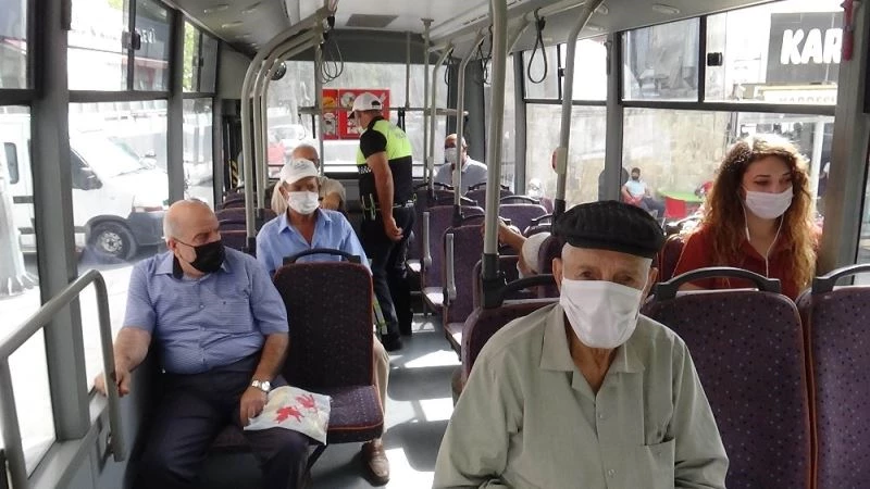 Kilis’te polis ekipleri, araçlarda maske uygulaması yaptı.