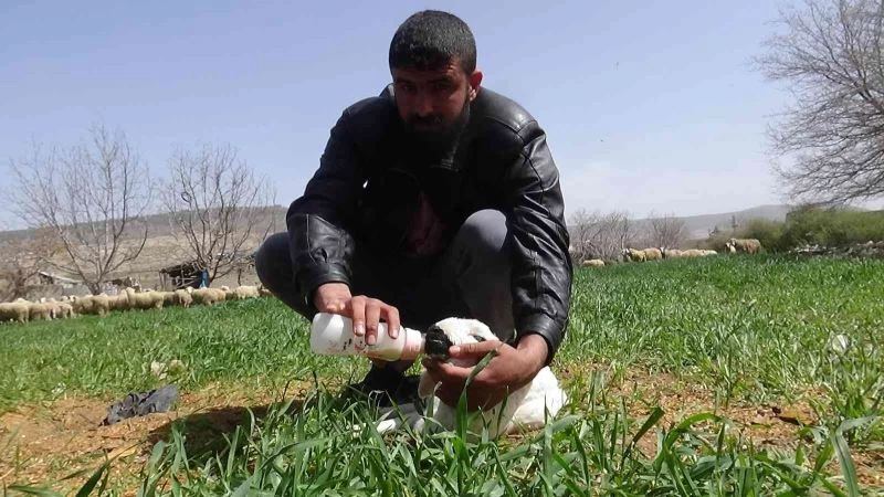 Hayvancılıkla uğraşan yabancı uyruklu Raşid El Ceruh’un (26), koyunlarından bir tanesi ön 2 ayağı olmayan kuzu dünyaya getirdi. Koyunun doğumuna yardımcı olan, Raşid El Ceruh, kuzuyu biberonla besliyor.