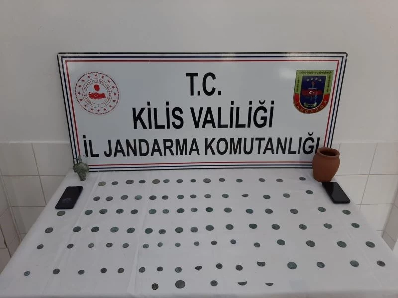 Kilis’te jandarma ekipleri, bir araçta 96 adet sikke, 1 adet küp ve 3 adet obje ele geçirildi.