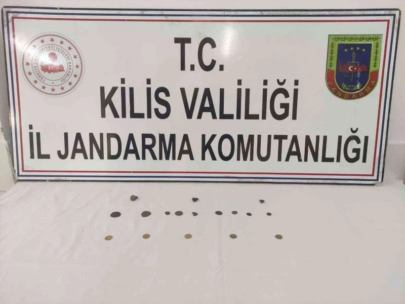Kilis’te jandarma ekipleri tarafından tarihi 14 adet sikke ile 3 adet yüzük ele geçirildi.